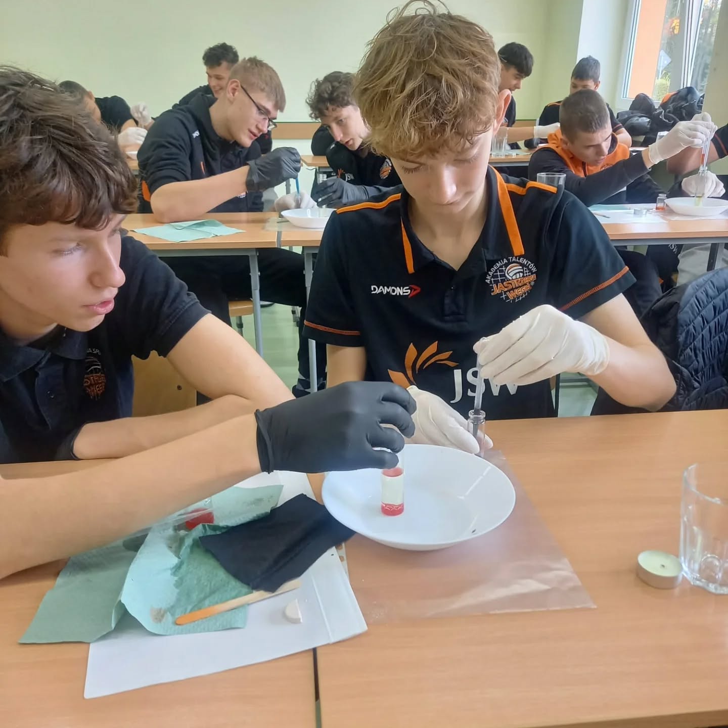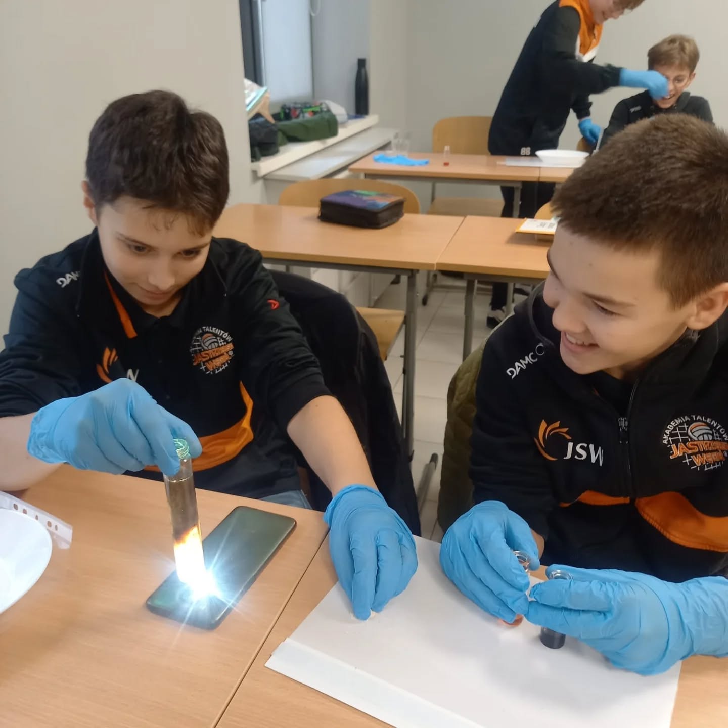 28 października 2025. uczniowie klasy 7 i 8 SP podczas zajęć z chemii sami przeprowadzali doświadczenia, poznając właściwości substancji oraz reakcje chemiczne.