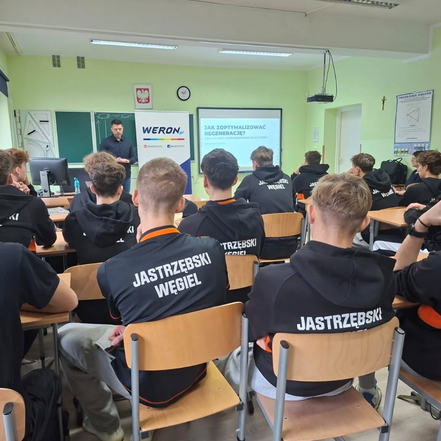 21 listopada 2025r. uczniowie klas III i IV naszego liceum wzięli udział w spotkaniu z dietetykiem sportowym, Panem Bartłomiejem Pomorskim. Podczas prelekcji poruszono wiele istotnych zagadnień związanych z żywieniem młodych sportowców. Uczniowie dowiedzieli się m.in., co i w jaki sposób suplementować, jak odpowiednio komponować posiłki w zależności od pory dnia oraz jak wspierać procesy regeneracyjne organizmu po wysiłku.